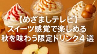 めざましテレビ 【めざましテレビ】スイーツ感覚で楽しめる秋を味わう限定ドリンク4選 2025年【イマドキ】 2025年10月9日放送のめざましテレビのイマドキのコーナーでは、スイーツ感覚で楽しめる秋を味わう限定ドリンク4選を紹介していました。 スイーツ感覚で楽しめる秋を味わう限定ドリンク3選 りんごとクランベリージェラッティー(680円) ゴンチ... 2025.10.09 めざましテレビ
