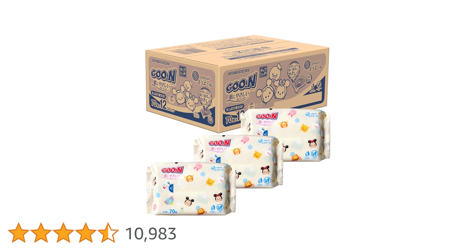 タップリッチ 【おしりふき 詰替用】グーン 肌にやさしいおしりふき 840枚(70枚×12個) [ケース販売] 【Amazon.co.jp限定】