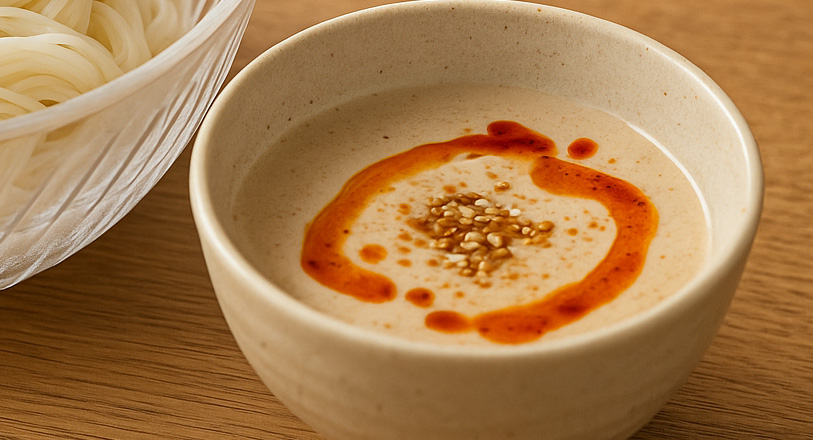 豆乳と味噌のまろやかさに、ごまドレッシングのコク、さらにうなぎの旨みが溶け込んだ濃厚なつゆです。ラー油とごま油がアクセントとなり、さっぱりとしたそうめんにぴったり合います。市販のきんぴらごぼうを加えることで、香ばしさと食感もプラスされ、夏に食欲をそそる一品でした。