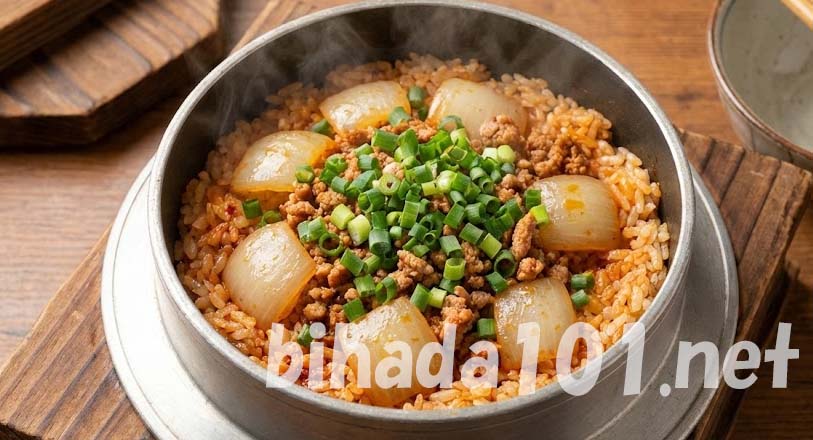 玉ねぎたっぷり勝浦タンタンメン風釜飯レシピ