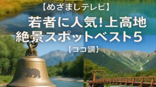 めざましテレビ 【めざましテレビ】若者に人気!上高地の絶景スポットベスト5【ココ調】 2025年9月23日放送のめざましテレビのココ調では、若者に人気!上高地の絶景スポットベスト5を紹介していました。ランキングは若者90人にアンケートして調査していました。 若者に人気!上高地の絶景スポットベスト5 5位 田代湿原 こちらは幻... 2025.09.23 めざましテレビ