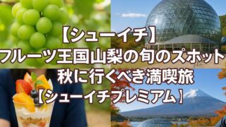 シューイチ 【シューイチ】フルーツ王国山梨の旬のスポット3選!秋に行くべき満喫旅【シューイチプレミアム】 2025年10月11日放送のシューイチのシューイチプレミアムではフルーツ王国山梨の旬のスポット3選を紹介していました。すがちゃん最高No.1さん、草薙航基さん、ME:IのKEIKOさんが体験していました。 フルーツ王国山梨の旬のスポット3選... 2025.10.11 シューイチ