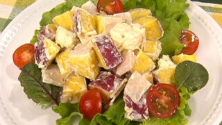 2025年10月3日放送のZIPのわが家のさつまいもレシピを調査!では、さつまいものおもてなしサラダを紹介していました。 さつまいものおもてなしサラダレシピ 調理時間: 15分 材料: 3人分 材料 さつまいも:350g クリームチーズ:5...