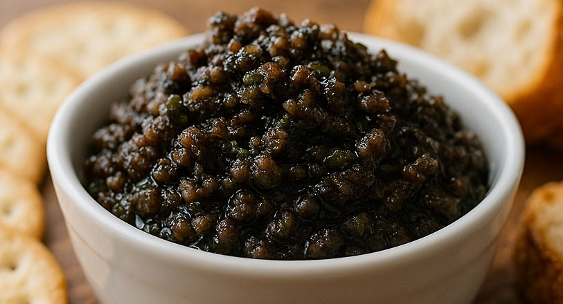 オリーブとケイパー、アンチョビの旨みがぎゅっと詰まったタプナードは、パンに塗るだけでワインのお供になる万能ソースです。シンプルな材料で手軽に作れるのに、味わいは本格的。作り置きしておくと、パスタや肉料理のアクセントにも活躍します。