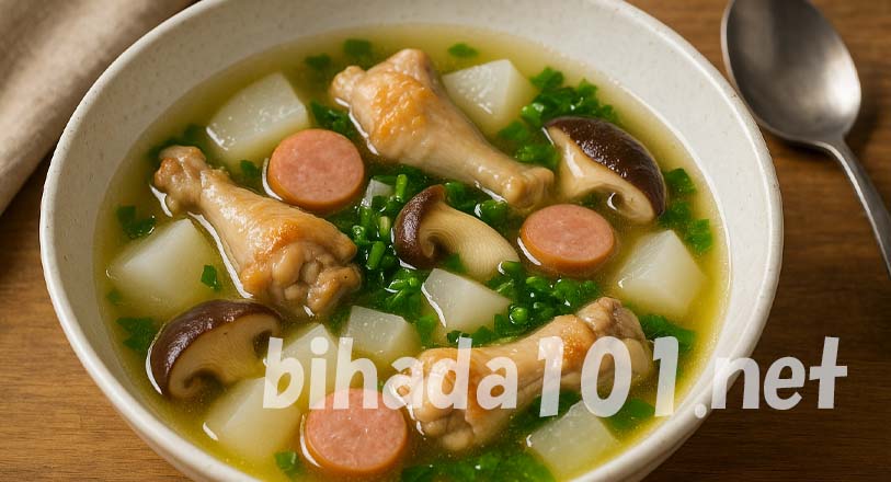 手羽中の旨味がブイヨンにしっかり溶け込み、大根が驚くほど甘く柔らかく仕上がります。ソーセージのコクも加わり、具だくさんで満足感のあるスープです。寒い日にぴったりの一品でした。