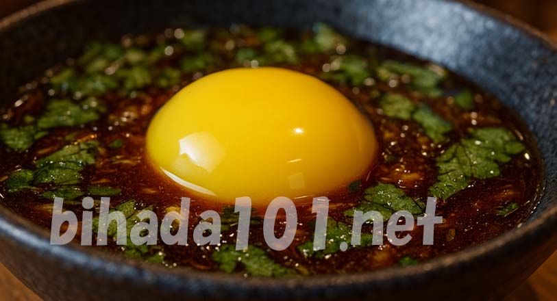 3. 最後に卵黄を加え、全体をなじむようにさっと混ぜたら中華風たれの完成です。
