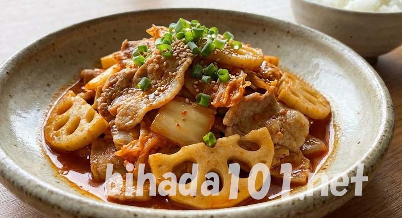 豚肉とれんこんのキムチ炒めレシピ