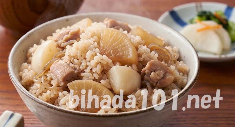 大根やカブ、しらたきといったヘルシーな食材を大胆に使うことで、お米1合とは思えない驚きのボリューム感になります。ごま油で具材を一度炒めてから炊くので、コクと香りが引き立ち、食べ応えも抜群です。ダイエット中だけどお腹いっぱい食べたい時にぴったりの、優しいうまみたっぷりなレシピですね。
