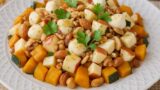 - ジャガイモの皮をむいて一口大に切り、水で洗って茹でます。柔らかくなったら湯を捨て、バターを加えて潰しながら混ぜ、さらに牛乳を加えてなめらかにし、付け合わせとして準備します。
