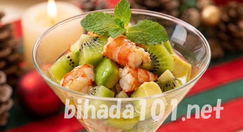 砂糖と塩を入れたお湯で予熱調理したエビは、驚くほどしっとりプリプリの食感で感動しました!キウイの爽やかな酸味とアボカドの濃厚なコクがエビの旨味を引き立てていて、まるで高級レストランの前菜のような味わいです。彩りも鮮やかで、クリスマスパーティーの食卓が一気に華やかになる素敵なレシピでした。