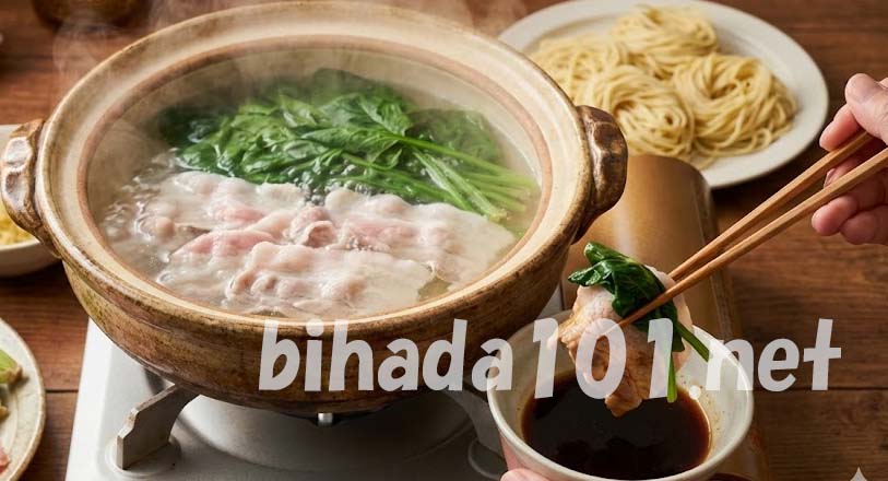 - 豚バラ肉とほうれん草を、火が通るまでお好みの加減でしゃぶしゃぶします。