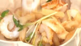 - トマトを乱切りにして加え、5分ほどなじませます。