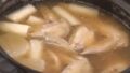 - 裏返して余分な油をふき取り、料理酒をふって蓋をし、さらに4〜5分焼いて火を通し、身をほぐします。