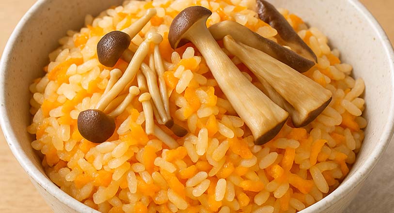 にんじんの鮮やかなオレンジ色が映え、見た目も食欲をそそるごはんです。すりおろしたにんじんの甘みときのこの旨味が絶妙に調和し、味付けもやさしいので何度でも食べたくなります。冷めても美味しく、お弁当やおにぎりにもぴったりな一品です。