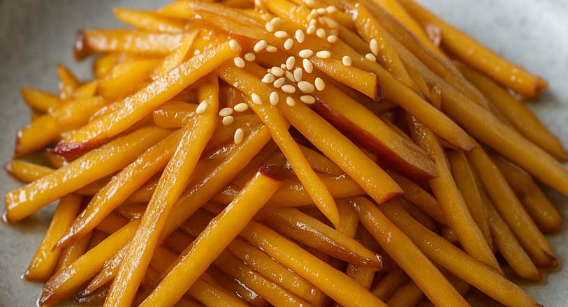 甘じょっぱく仕上がったさつまいもきんぴらは、ご飯のおかずやお弁当のおかずにもぴったりでした。さつまいもの自然な甘みと調味料のバランスがよく、食感も楽しめる一品です。手軽に作れるのも魅力です。