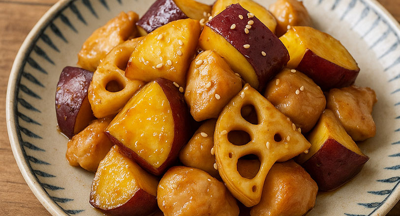 さつまいものホクホク感とれんこんのシャキシャキ感が楽しめる一品でした。鶏肉の旨みも加わり、甘酢のさっぱりとした味付けでご飯のおかずにぴったり。冷めてもおいしいのでお弁当にもおすすめです。