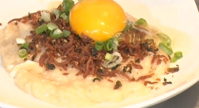 長芋と卵白でふわふわ・とろとろに仕上がった生地に、ちりめん山椒の香りと塩気が絶妙にマッチしていました。卵黄を絡めるとまろやかさが加わり、ご飯が進む贅沢なお供になります。おもてなしやちょっとした一品にもぴったりです。