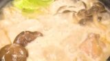 - 水、しょうゆ、塩、片栗粉を加えてとろみをつけます。