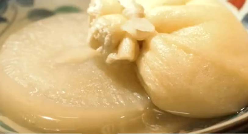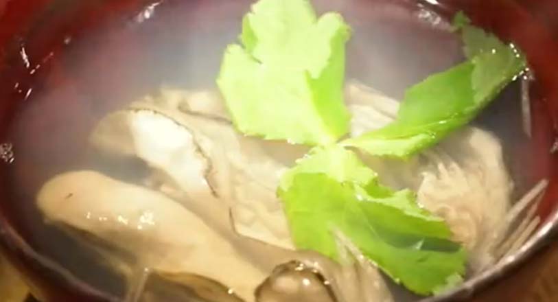 名店のおすすめのおでんは、かきのおでん(1380円)。お店で一番人気のおでん種。お吸い物として出されるそうです。鍋のなかに入れると牡蠣のエキスがでてしまうのでカキだけで提供するのにお吸いとしてだしているとのこと。一茂さんも「すばらしい」といっていました。