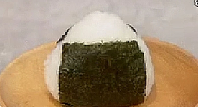 - 風呂敷を包むようにして三角形のおにぎりの形にし、2〜3回ふんわりと軽く握ります。