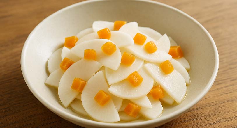 干し柿のやさしい甘みとかぶのシャキシャキ感が絶妙にマッチする一品です。調味料はシンプルですが、干し柿が自然な甘さと風味をプラスしてくれるので、秋の副菜や箸休めとしてぴったりです。作り置きにも向いており、食卓を彩る爽やかな和の味わいが楽しめます。