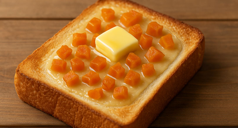 白味噌のまろやかな塩気と干し柿の自然な甘みが絶妙に組み合わさった一品です。焼きたての香ばしさと、バターのコクが加わることで、シンプルながらも奥深い味わいになります。朝食やおやつにもぴったりで、秋らしい風味を楽しめます。
