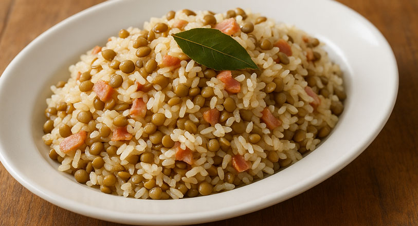 レンズ豆のやさしい風味とベーコンのうま味がごはん全体にしみこんでいて、炊きあがりはふっくらとした仕上がりです。豆のほくほく感がアクセントになっていて、秋らしい一品でした。冷めてもおいしいのでお弁当にもぴったりです。