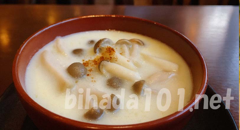 牛乳のまろやかさが加わり、コクのあるやさしい豚汁に仕上がります。具材のきのこから旨味がしっかり出て、体が温まる満足感のある一杯でした。