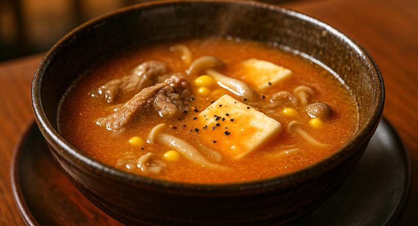 - 絹ごし豆腐とコーンを加えて軽く煮たら完成です。