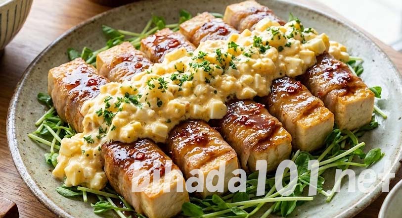 肉巻き豆腐の照りポンタルタルレシピ