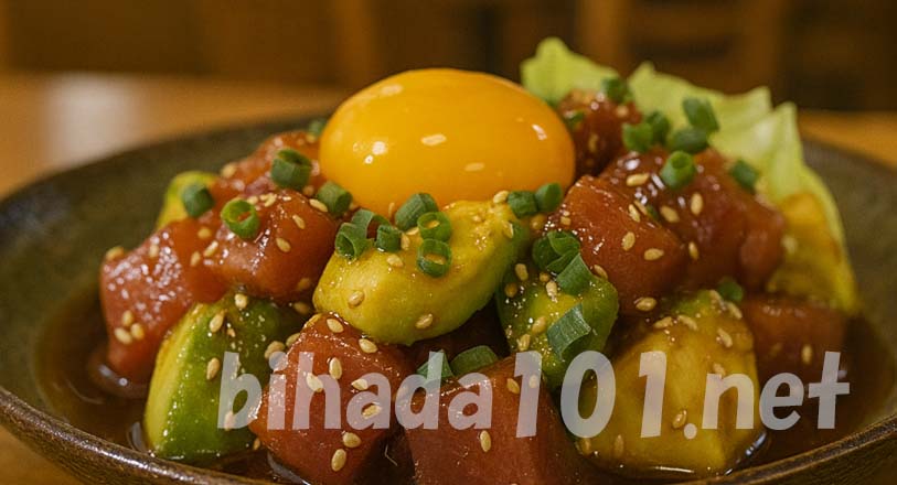 2025年11月22日放送の満天青空レストランの「極上アボカド!クリーミーで絶品!」では、アボカドユッケを紹介していました。