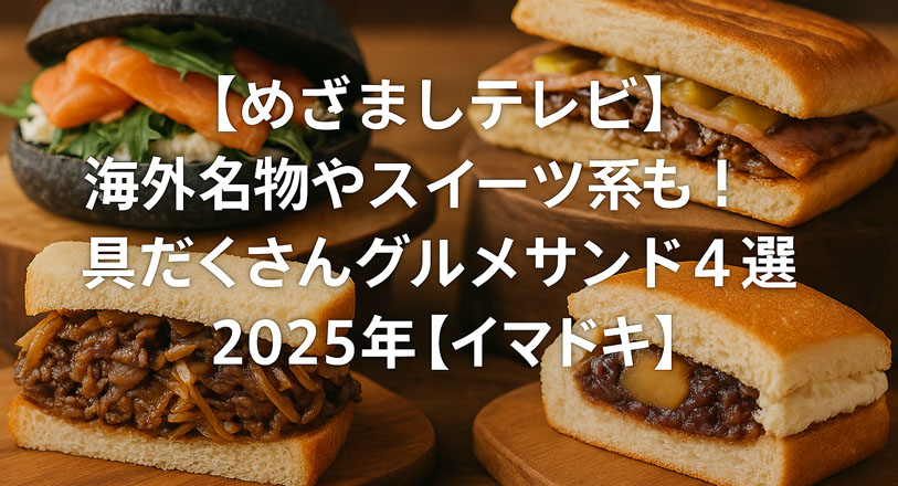 2025年10月17日放送のめざましテレビのイマドキのコーナーでは、海外名物やスイーツ系も!具だくさんグルメサンド4選を紹介していました。