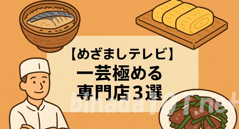 2025年11月3日放送のめざましテレビのココ調では、一芸極める専門店3選をココ調していました。週2日しか営業ていないレバニラ定食の専門店やだし巻きたまごの専門店、サバ飯とシメの茶漬けも美味しいサバ飯専門店をピックアップ。