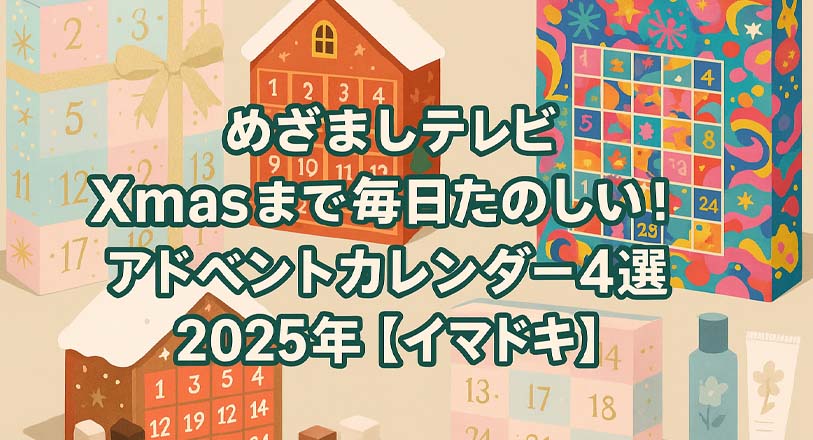 2025年12月1日放送のめざましテレビのイマドキのコーナーでは、Xmasまで毎日たのしい!アドベントカレンダー4選を紹介していました。アドベントカレンダーはXmasまでのカウントダウンを楽しむためのカレンダーです。