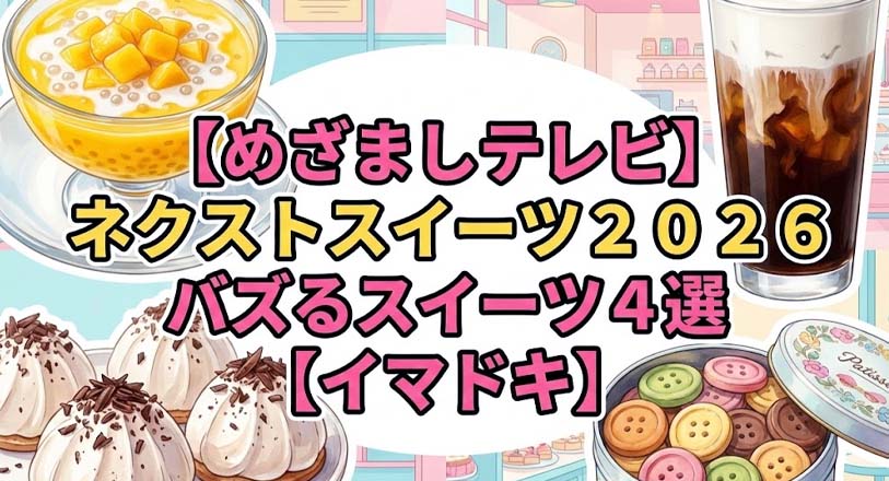 2026年1月7日放送のめざましテレビのイマドキのコーナーでは、ネクストスイーツ2026 バズるスイーツ4選を紹介していました。