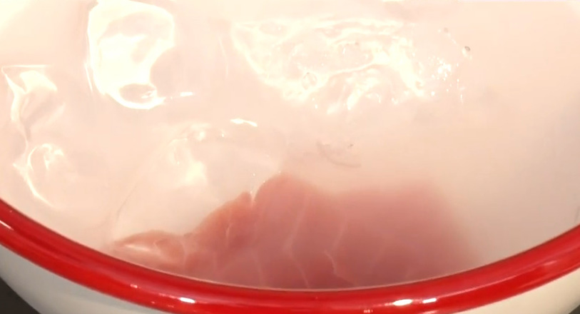 2. 氷を加えて冷たくし、そこにお刺身を5分ほど漬け込みます。