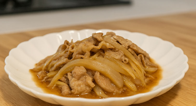 新生姜のシャキッとした食感と、すりおろし生姜の香りが絶妙に合わさり、口に入れるとふわっと広がる生姜の風味が食欲をそそります。甘辛い醤油だれが豚肉と玉ねぎにしっかり染み込み、ご飯が止まらないおいしさ。シンプルながらも奥深い味わいの生姜焼きです。