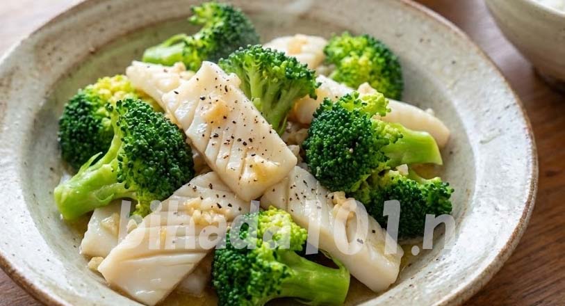 にんにくとバターの香りがイカの旨味をさらに引き立て、ブロッコリーの食感と相性抜群でした。シンプルな材料なのにコクがあり、ご飯にもお酒にも合う万能なおかずです。短時間で作れるのも嬉しいポイントでした。