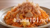 - めんつゆと刻んだにらを加え、かつお節と青のりをふりかけたら完成です。