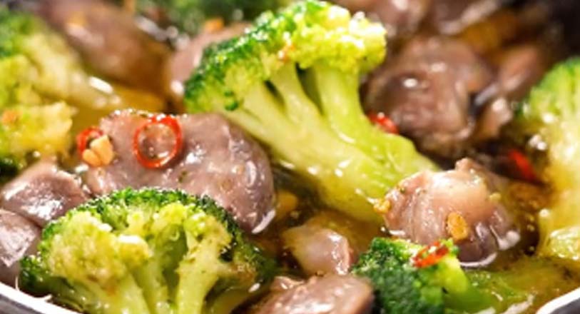 - 砂肝の炭火焼と冷凍ブロッコリーを入れて温めたら完成です。