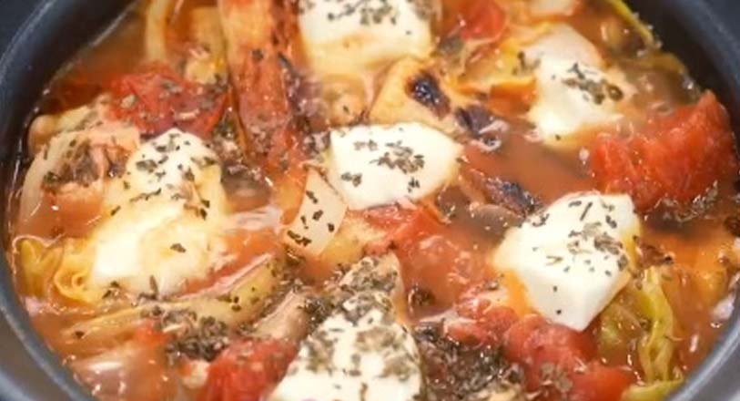 たんぱく質王子RYOさんのマルゲリータ風ピザ鍋レシピ