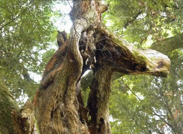 大杉神社の境内には勝馬神社があり、開運待ち受け画像はこの勝馬神社のそばにある御神木の画像でした。馬の顔の形をしているのが特徴です。