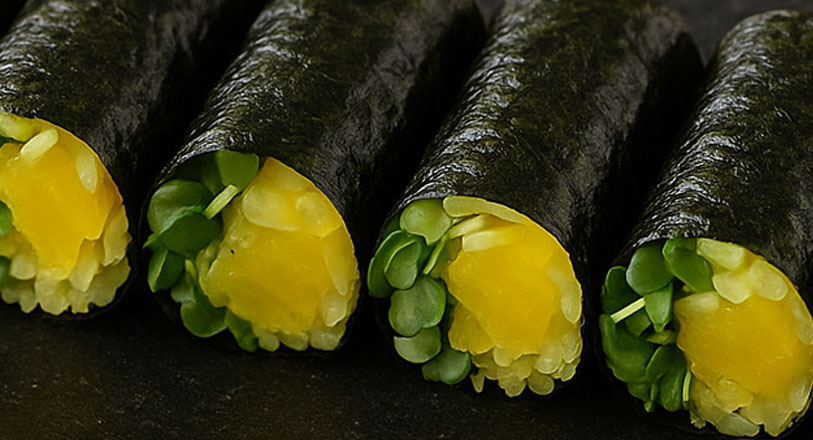 - 焼き海苔の上に②をのせて巻き、食べやすい大きさに切って完成です。