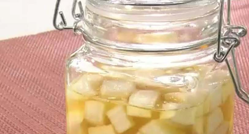 - 大根は皮をむかずに1センチ角にカットし、保存瓶に入れます。