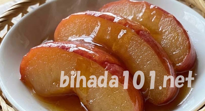 砂糖や水を一切使わず、本みりんだけで煮込むというシンプルさに驚きました。皮ごと煮ることで、りんごがほんのりと可愛いピンク色に染まり、見た目にも華やかです。本みりんの上品で優しい甘みがしみ込んでいて、りんごの酸味と絶妙なバランスでした。冷やして食べるとさらに美味しく、お正月のデザートにもぴったりだと思います。