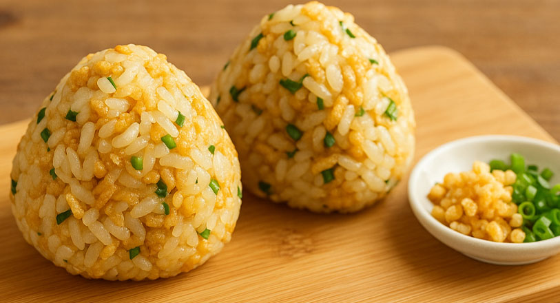 天かすのサクサク感とごま油の香ばしさが絶妙で、冷めても美味しいおにぎりです。天つゆのほどよい甘辛さがご飯全体にしみ込み、青ねぎの風味がアクセントに。忙しい朝やお弁当にもぴったりで、まさに“鉄板”の簡単おにぎりレシピです。