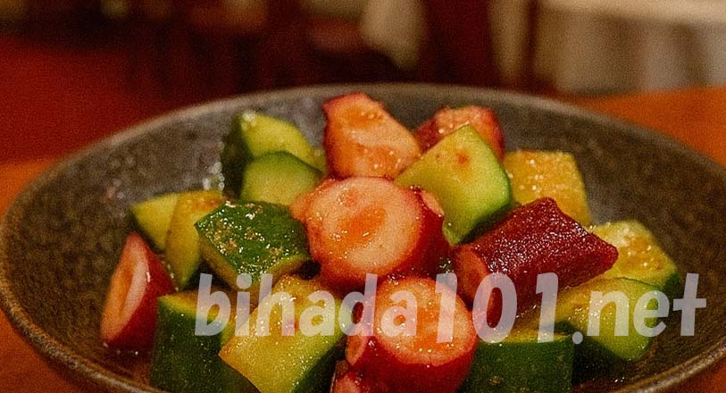- ボウルにぶつ切りのタコと乱切りにしたきゅうりを入れます。