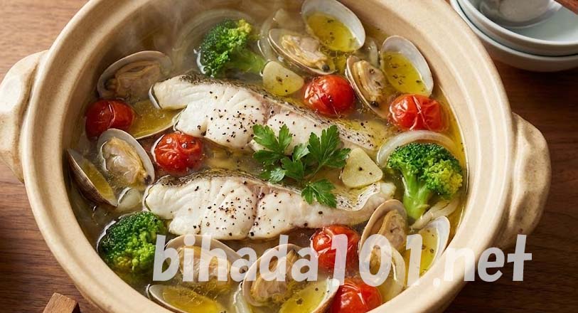 - 蓋をして中火で加熱し、魚に火が通り、あさりの口が開いたら完成です。