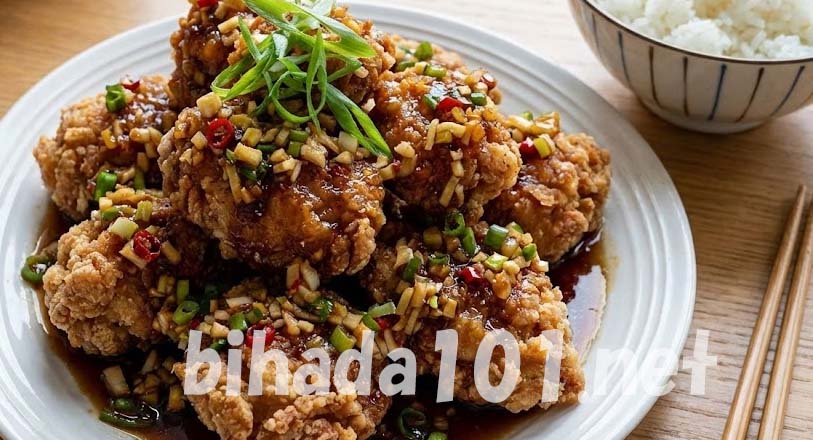 - 最後に2で作ったタレをたっぷりとかけたら完成です。