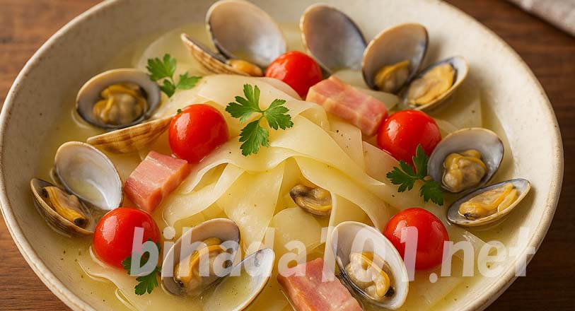 アクアパッツァのようにあさりのうま味がしっかり大根にしみ込み、やさしいのに深い味わいの一品でした。ピーラーで薄くした大根は火通りが良く、驚くほどトロッとした口当たりになります。短時間で作れるのに見た目も華やかで、夕食のメインにもぴったりです。